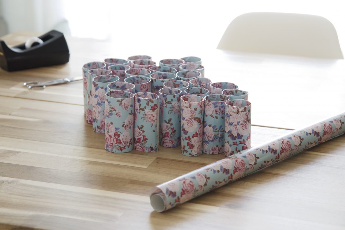 Então ao sentir este dificuldade comecei a pesquisar soluções de organização, e um dia encontrei no Pinterest esta bela ideia. Ao longo do tempo fui guardando os tubos do papel higiénico e à uns tempos pôs mãos à obra.